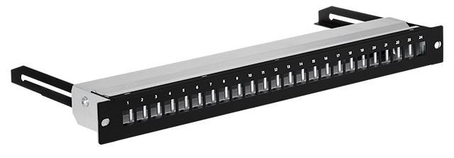 Neosazený 24 portový patch panel pro UTP/FTP, výsuvnýVelikost: 1U