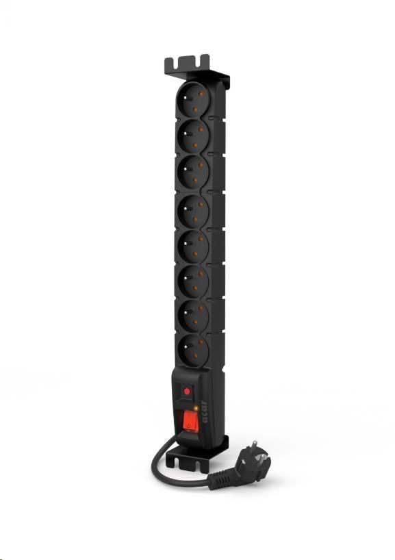19" rozvodný panel ACAR 8x230V, vypínač, indikátor napětí, přepěťová ochrana, kabel 3m