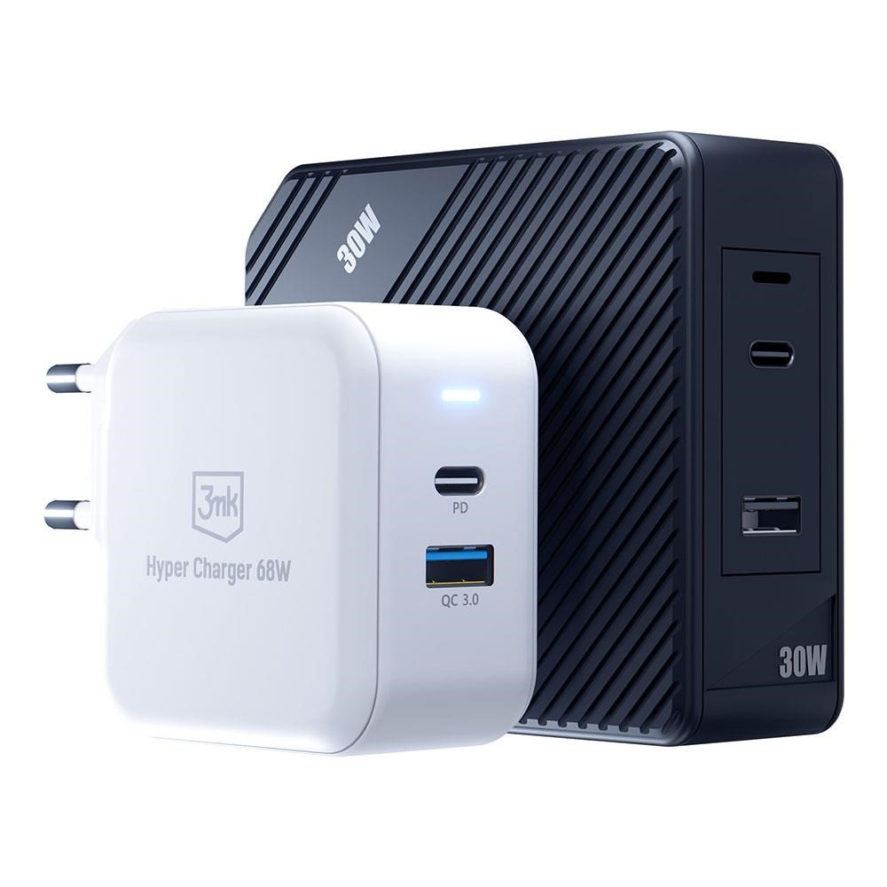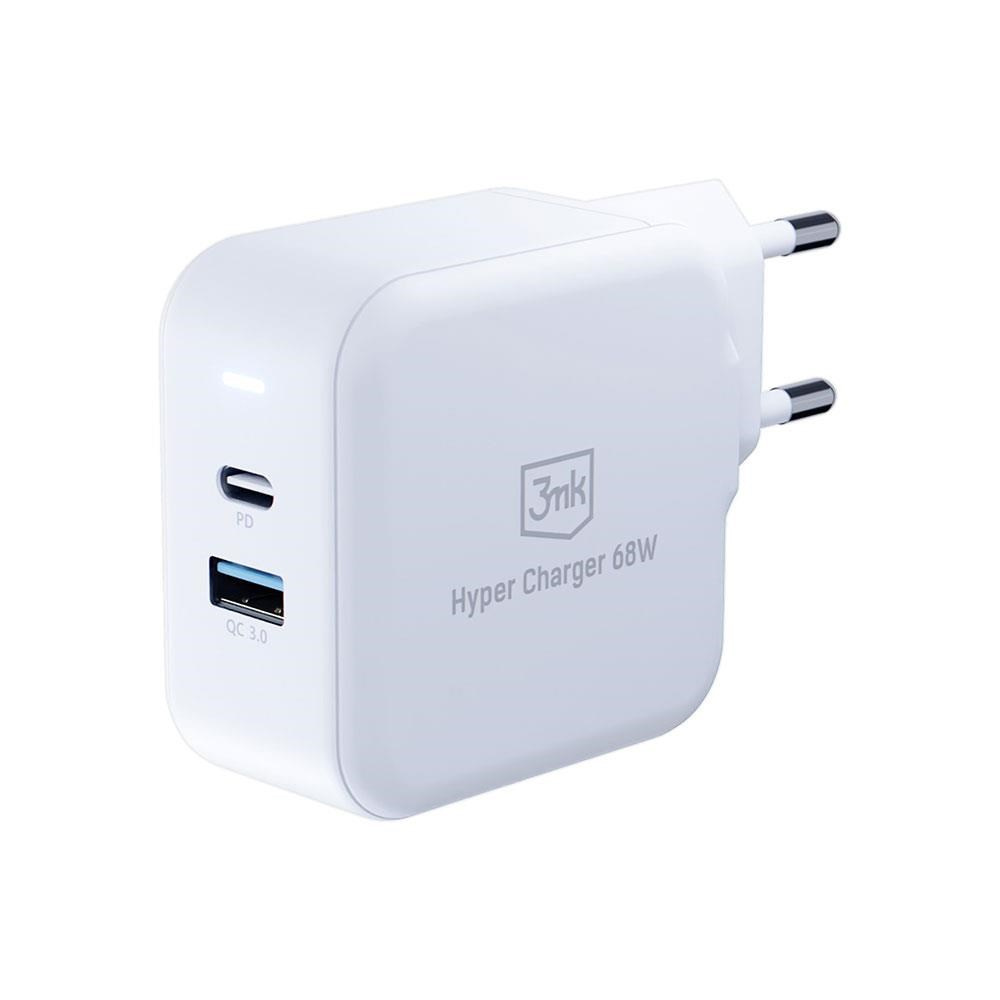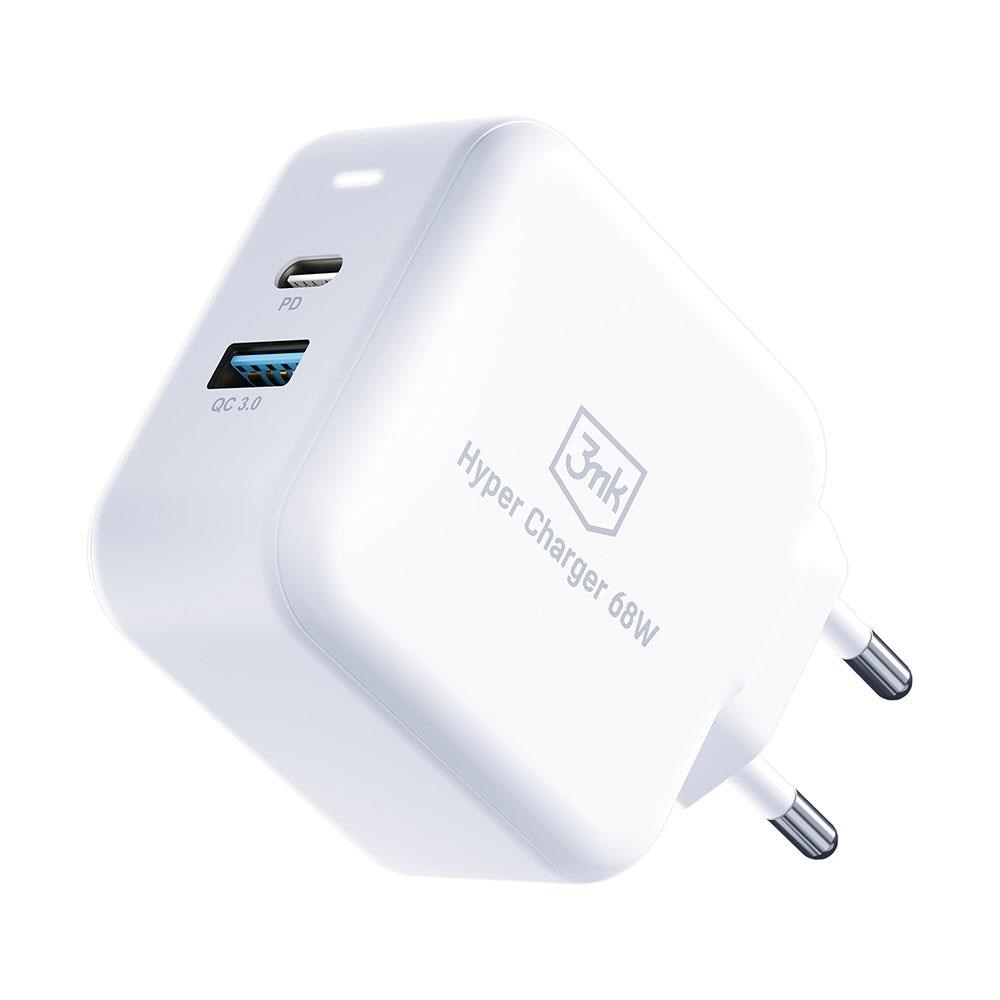 3mk síťová nabíječka - Hyper Charger 68W, GaN, 1x USB-C (PD), 1x USB, bílá