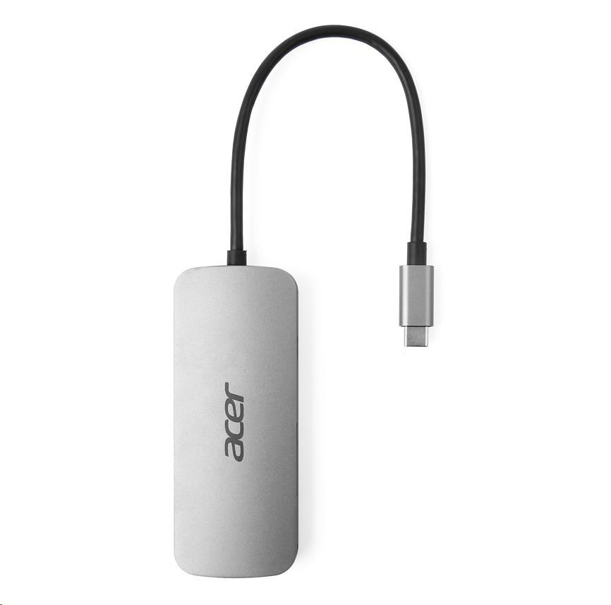 ACER Dokovací stanice 7in1 Type-C dongle, 1x HDMI, 3x USB-A 3.2 Gen1, 1x SD 3.0, 1x microSD, 1x USB-C, silver