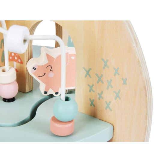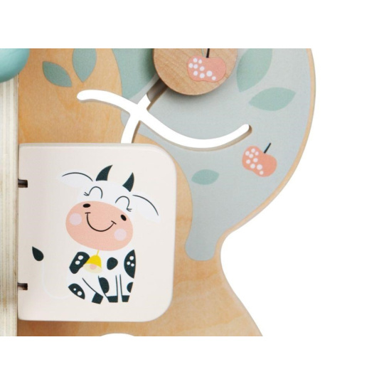 Activity board v podobě stromu zavede holčičky i chlapce na farmu, kde si pohrají s hracími prvky a zvířátky, která mohou vidět ve svém okolí, na venkově, na farmě. Příjemné pastelové barvy a motiv zvířátek dodávají hračce lákavý vzhled a lákají k pečlivému prozkoumání. Activity board strom vede děti k samostatnosti ve hře, v poznávání a učení se, zdokonaluje dětské dovednosti..