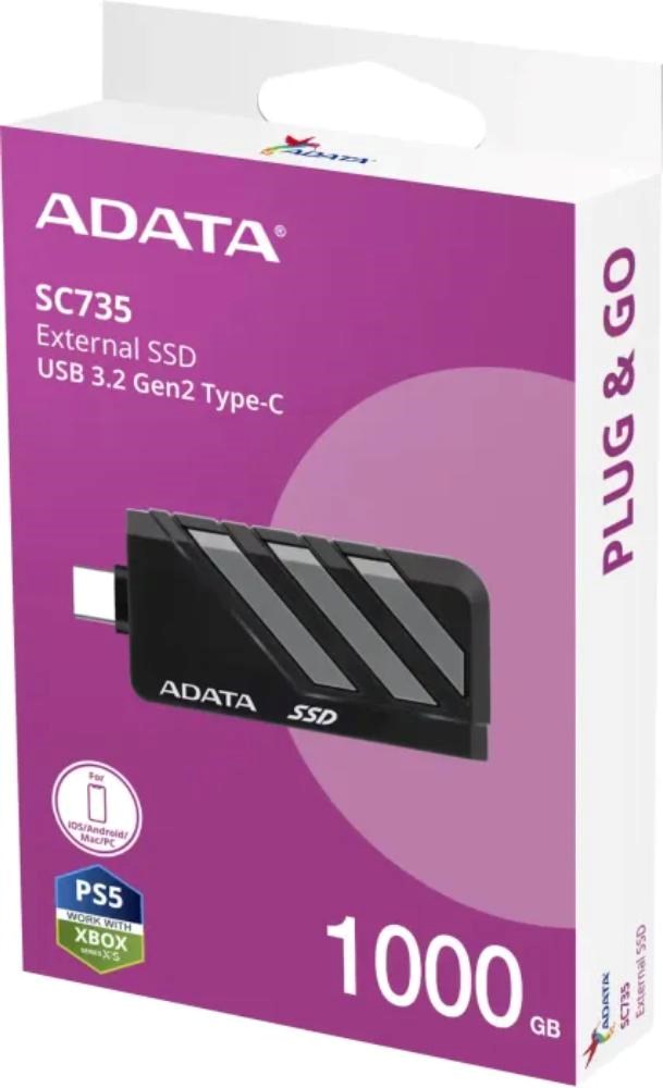 ADATA External SSD 1TB SC735, USB-C 3.2 Gen2, Černá