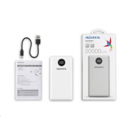 ADATA PowerBank P20000QCD - externí baterie pro mobil/tablet 20000mAh, 2,1A, bílá (74Wh)