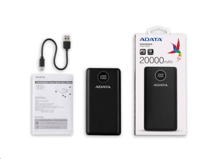 ADATA PowerBank P20000QCD - externí baterie pro mobil/tablet 20000mAh, 2,1A, černá (74Wh)