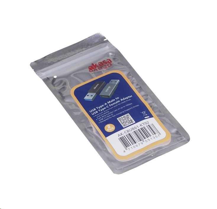 AKASA adaptér USB3.1 Gen2 Type-C na Type-A (F/M), 2ks v balení