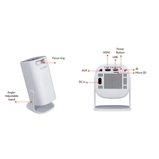 Použití projektoru:Přenosný; Skutečné rozlišení projektoru:HD 720 (1280x720); Projekční poměr:16:9; Úhlopříčka obrazu (max) ("):75; Technologie:LCD; Zdroj světla:LED; Kontrast (hodnota : 1):1000; Rozhraní:MicroSD, HDMI, USB, 3.5mm Jack; Umístění:Na stůl / na zem; Funkce:Bateriový provoz, Reproduktory, Zoom; Reproduktory; Reproduktory počet:2.... více