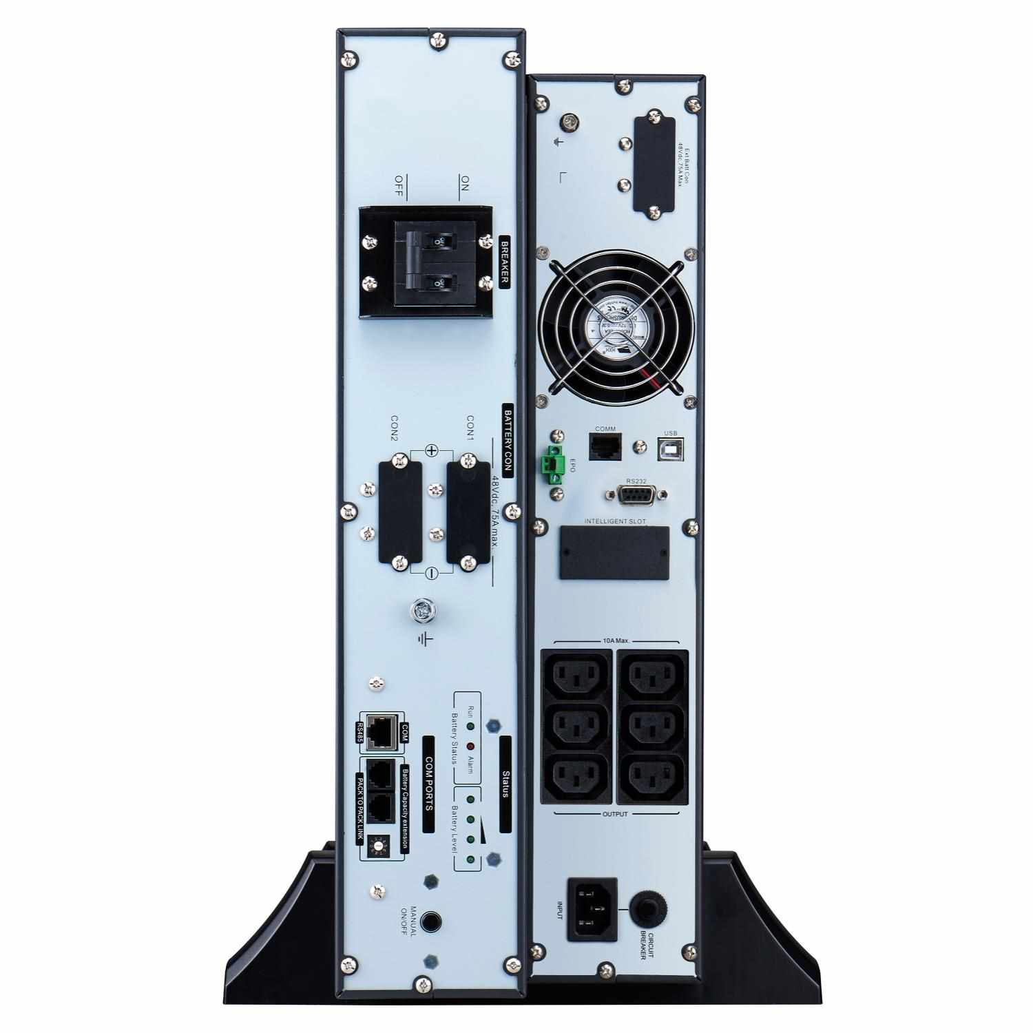 | Dodávka obsahuje | Základní kabel pro komunikaci záložního zdroje přes rozhraní RS-232, Kabel USB, Kabel RJ45, Kabel RJ11, Napájecí kabel C13-C14, Skříňové instalační konzole, Skříňové podpěrné lišty, Stabilizační nohy, Uživatelská příručka, Bezpečnostní příručka, Battery cable |