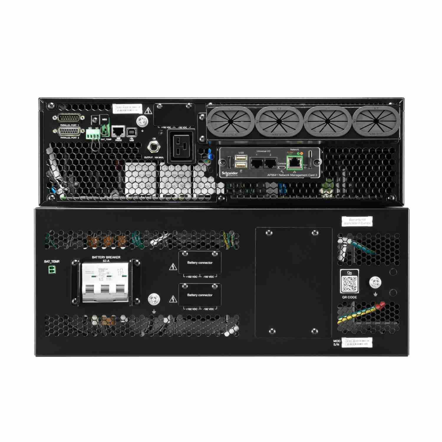 | Dodávka obsahuje | CD se softwarem, Konzoly pro montáž do stojanu, Signalizační kabel Smart UPS RS-232, USB kabel, Paralelní kabel, Propojovací kabel C19/C20, Svorkovnice, Uživatelská příručka, Stabilizační držák, Karta pro řízení přes web/SNMP, Sady šroubů |