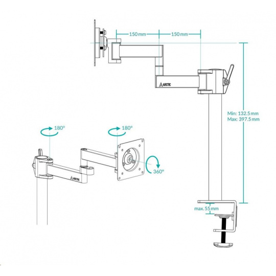 - SIMPLE AND QUICK ASSEMBLY - Thanks to the table clamp, the monitor arm can be placed freely and easily on the edge of the table. The arm is completely pre-assembled and is simply placed on the rod. Assembly or later repositioning is therefore child's play and can be done quickly.