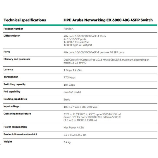 | Aruba 6000 48G 4SFP Switch (R8N86A) | |
