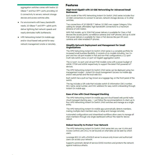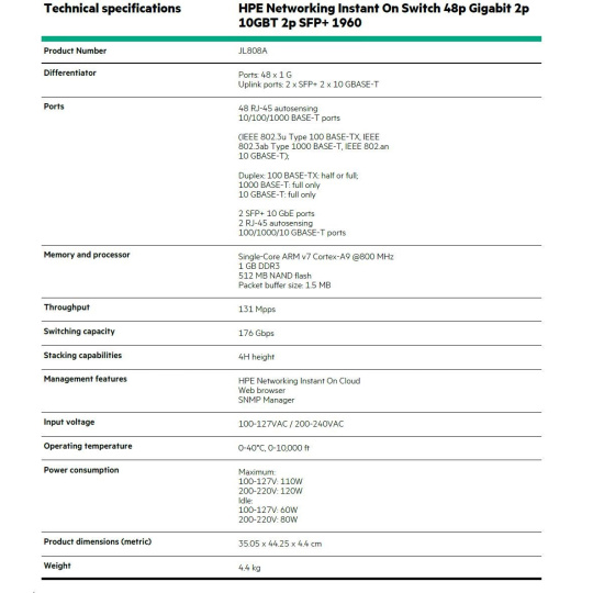 HPE Networking Instant On Switch 48p Gigabit 2p 10GBT 2p SFP+ 1960 (JL808A).