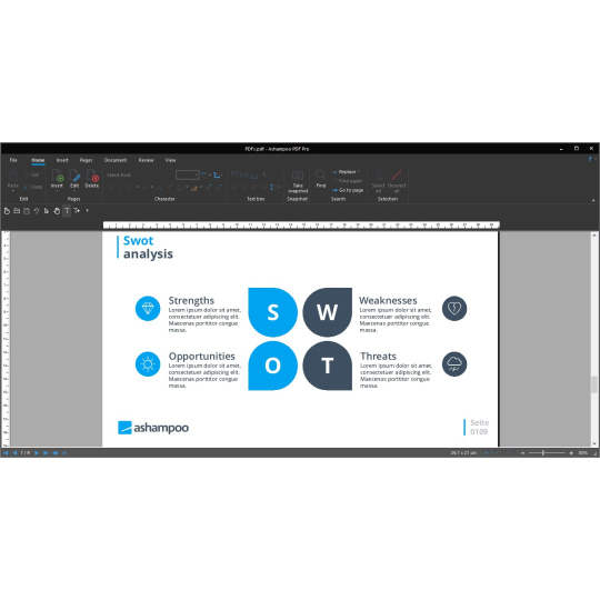 Ashampoo PDF Pro 5 je kompletní řešení pro správu a úpravu vašich PDF dokumentů. Program obsahuje vše, co potřebujete k vytváření, převodu, úpravám, slučování a ochraně vašich PDF souborů. Vytvářejte dokumenty perfektní velikosti, které jsou čitelné na jakémkoli zařízení, a v případě potřeby používejte šifrování k ochraně vašeho majetku. Vaše PDF soubory jsou nyní stejně snadno upravitelné jako dokumenty Wordu!