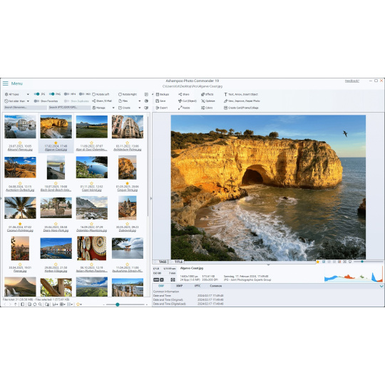 Získejte perfektní upgrade s novým Ashampoo Photo Commander 19! Užijte si více soukromí pro své fotografie, plynulejší správu s inteligentní detekcí disku a zbrusu novým zobrazením Kde?/Kdy?. Photo Commander 19 nabízí plnou podporu pro moderní formáty, jako jsou animace WEBP, RAW a optimalizované video kodeky, a navíc řadu detailních vylepšení průvodců, koláží a detekce duplikátů!