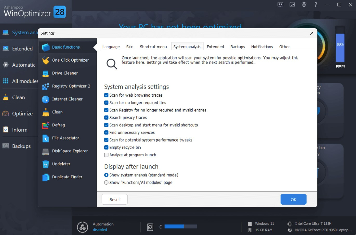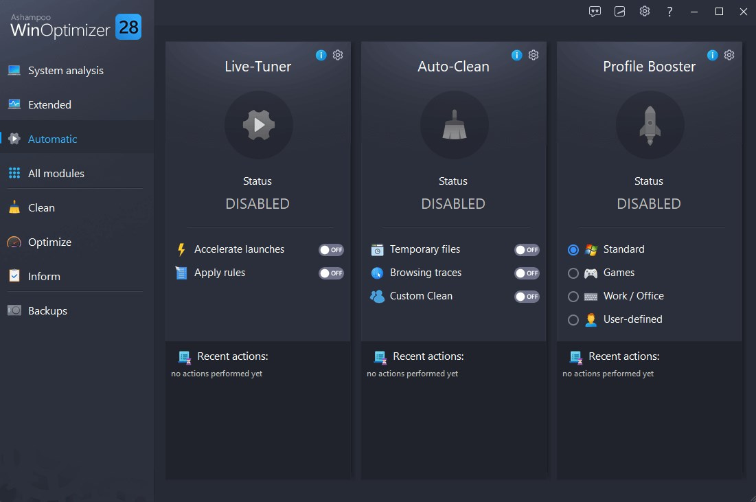 S novým programem Ashampoo WinOptimizer 28 získáte automaticky nejlepší zážitek z práce s Windows. Jeho nová automatizace zrychluje, čistí a ladí vaše aplikace. Nechte svůj počítač plynule přizpůsobit vašim potřebám pomocí prioritizace procesů, automatického čištění dočasných souborů a vlastních konfigurací profilů na základě nového nástroje Profile Booster. Ať už jde o hraní her, práci nebo prohlížení webu, maximalizujte výkon systému nebo šetřete prostředky, volba je na vás. Nový nástroj Crash Analyzer nabízí hluboký pohled na pády systému a jejich příčiny, zatímco čtyři pokročilé čističe zajišťují soukromí a poskytují údržbu systému. Díky vylepšené správě paměti dokáže nyní WinOptimizer využít více prostředků k provádění komplexních analýz téměř okamžitě!