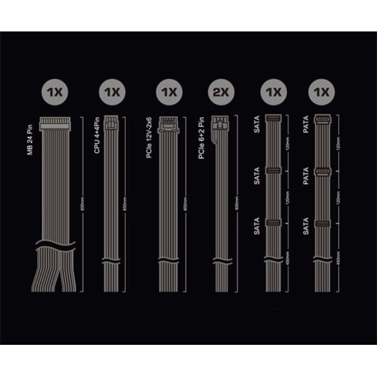 | PCIe 6+2pin Konektor | 2x / 2x (600mm) |