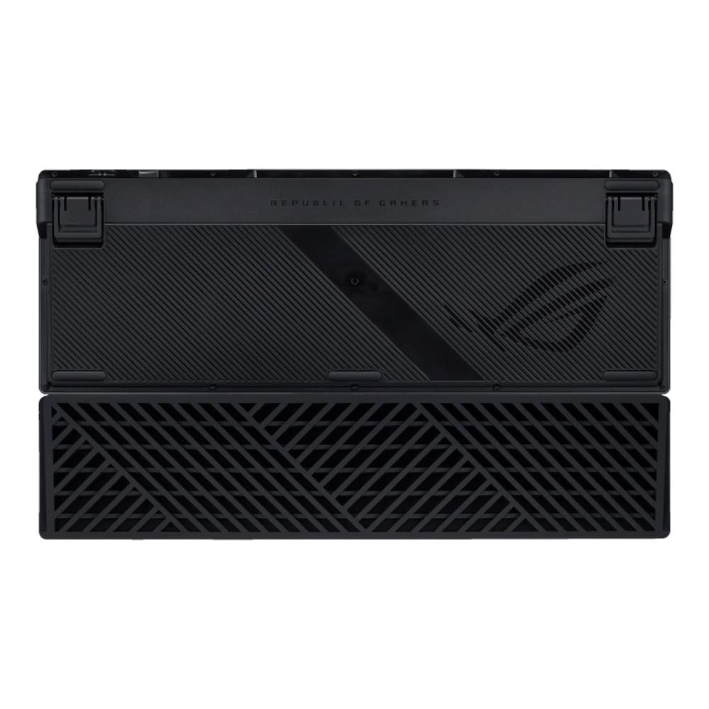ROG Azoth 96 HE analogová herní klávesnice s vyměnitelnými magnetickými spínači ROG HFX V2 a senzorem ROG Hall. Nabízí OLED displej, třísměrný ovládací knoflík, trojí způsob připojení s bezdrátovou technologií ROG SpeedNova 8K, režim Zone, šestivrstvé tlumení a odnímatelné silikonové opěrky zápěstí.