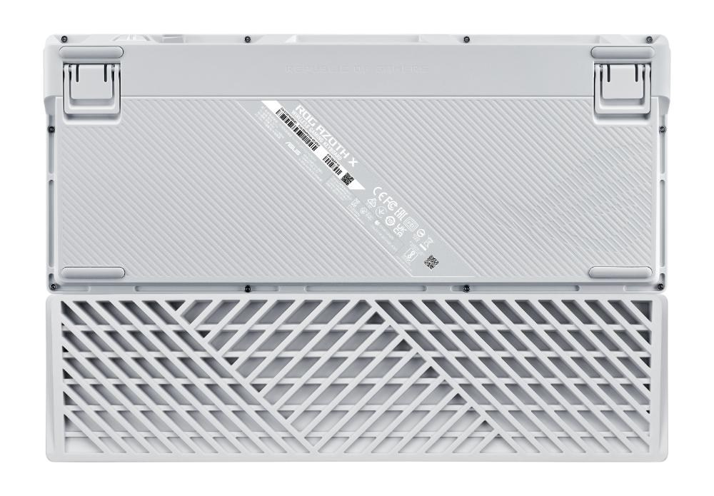Vlastní herní klávesnice ROG Azoth X 75% s mechanickými spínači ROG NX V2 vyměnitelnými za provozu, barvenými a poloprůhlednými klávesami, kovovým horním krytem, těsněním, pětivrstvou tlumicí pěnou, polohovací deskou FR4, deskou plošných spojů orientovanou na jih, třírežimovým připojením s technologií SpeedNova 2,4 GHz, displejem OLED, třísměrným ovládacím kolečkem, opěrkou zápěstí, třemi úhly náklonu a podporou počítačů Mac.