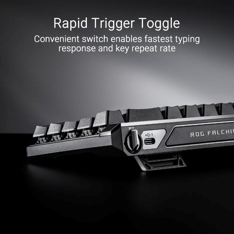 - Magnetické spínače ROG HFX: Má přizpůsobitelné ovládání 0,1 - 4,0 mm pro okamžité stisknutí kláves