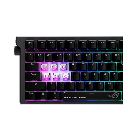 • Unikátní klávesy s tématikou ROG: Tři dodatečné průsvitné klávesy s motivy ROG umožňují další přizpůsobení vzhledu