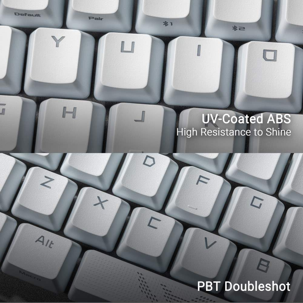 - Vylepšené možnosti psaní: Předem namazané stabilizátory klávesnice produkují menší tření pro hladší stisk kláves a stabilitu pro delší klávesy; odolné krytky kláves ROG PBT doubleshot nebo krytky kláves ABS s UV vrstvou nabízejí prvotřídní pocit a odolnost proti lesku