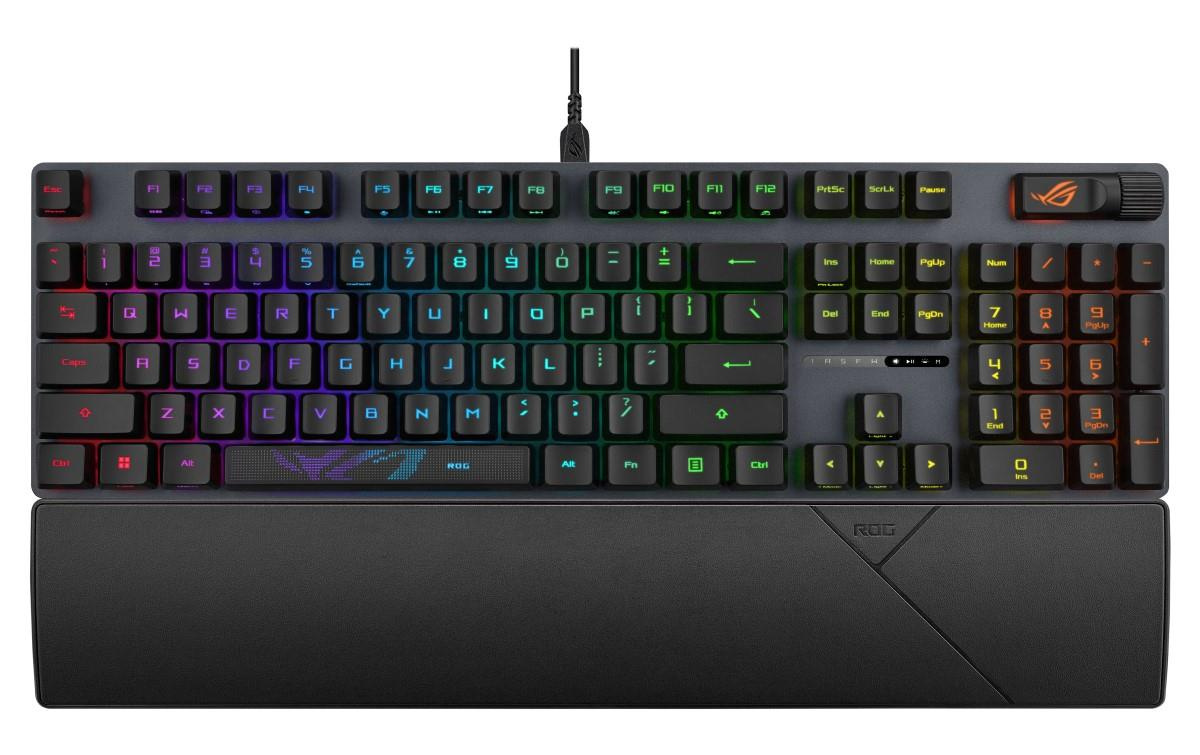 - PBT / ABS klávesy s UV vrstvou: Odolné klávesy ROG PBT doubleshot nebo klávesy ABS s UV vrstvou nabízejí prvotřídní pocit a odolnost proti lesku