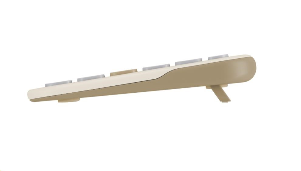 Rozložení kláves odpovídá notebooku, s dvěma systémovými přepínači pro plynulé přepínání mezi režimy Windows, ChromeOS, MacOS, iOS a iPadOS. Odolné spínače s životností 10 milionů kliknutí a povrchovou úpravou odolnou proti UV záření. Nový papírový obal je šetrný k životnímu prostředí, eliminující plastové materiály z předchozích obalů klávesnic.
