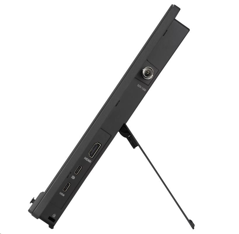 Bohaté možnosti připojení zahrnují port 12G-SDI, USB-C (režim DP Alt) podporující řešení s jedním kabelem a HDMI (v2.0) pro kompatibilitu se současnými i budoucími displeji a periferními zařízeními. Disponuje také rozbočovačem USB 3.2 Gen 1 Type-C.