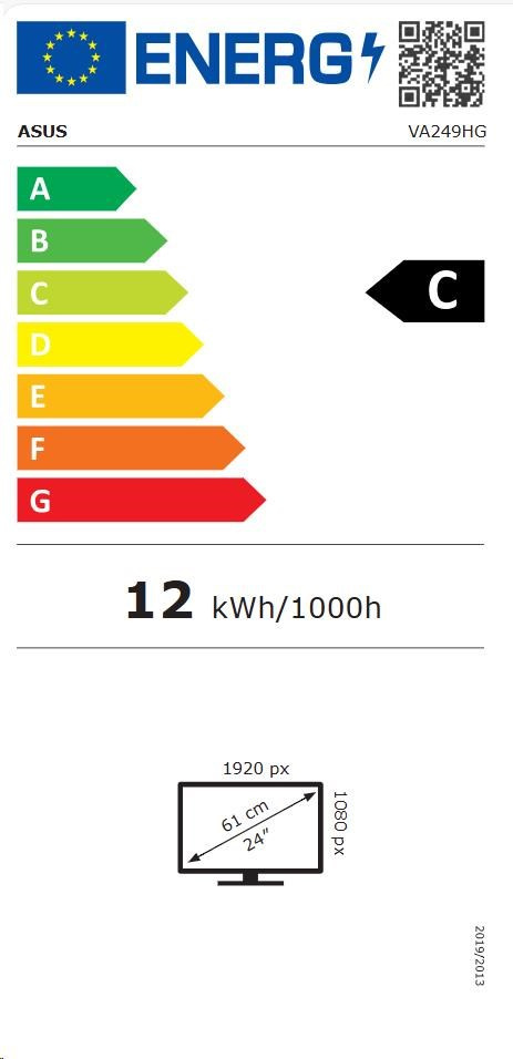 Herní monitor ASUS VA249HG Eye Care - 24palcový (s pozorovací úhlopříčkou 23,8 palce), IPS, Full HD, 99 % sRGB, bezrámečkový, 120 Hz, adaptivní synchronizace, 1 ms MPRT, HDMI, VGA, nízké modré světlo, bez blikání, možnost montáže na zeď
