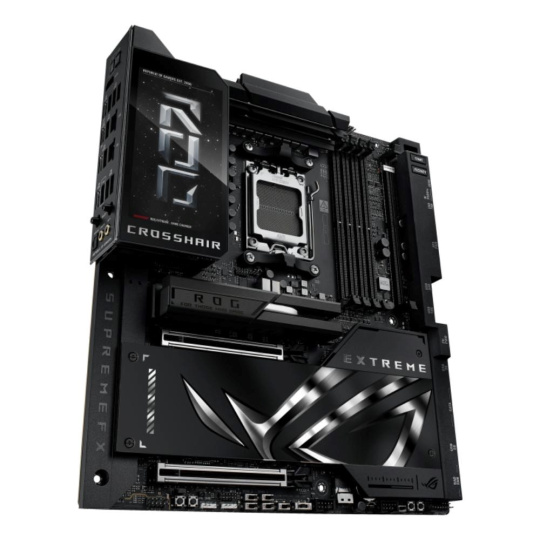 The ROG Crosshair X870E Extreme is the flagship AMD Ryzen 9000 series motherboard, designed for the most discerning users. It provides the ultimate foundation for AM5 CPUs, DDR5 memory, and PCIe 5.0 components to ensure maximum performance and future-readiness. Its comprehensive connectivity includes USB4, and the integrated 5-inch LCD offers a unique way to monitor system performance or add a touch of personalized style.