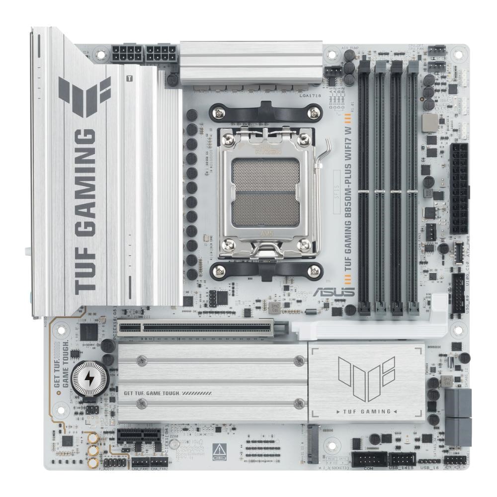 ASUS TUF GAMING B850M-PLUS WIFI7 W takes all the essential elements of the latest AMD Ryzen™ processors and combines them with game-ready features and proven durability. Engineered with military-grade components, an upgraded power solution and a comprehensive cooling system, this motherboard goes beyond expectations with rock-solid and stable performance for marathon gaming. TUF GAMING motherboards also undergo rigorous endurance testing to ensure that they can handle conditions where others may fail. This platform delivers the power and connectivity that advanced AI PC applications demand.