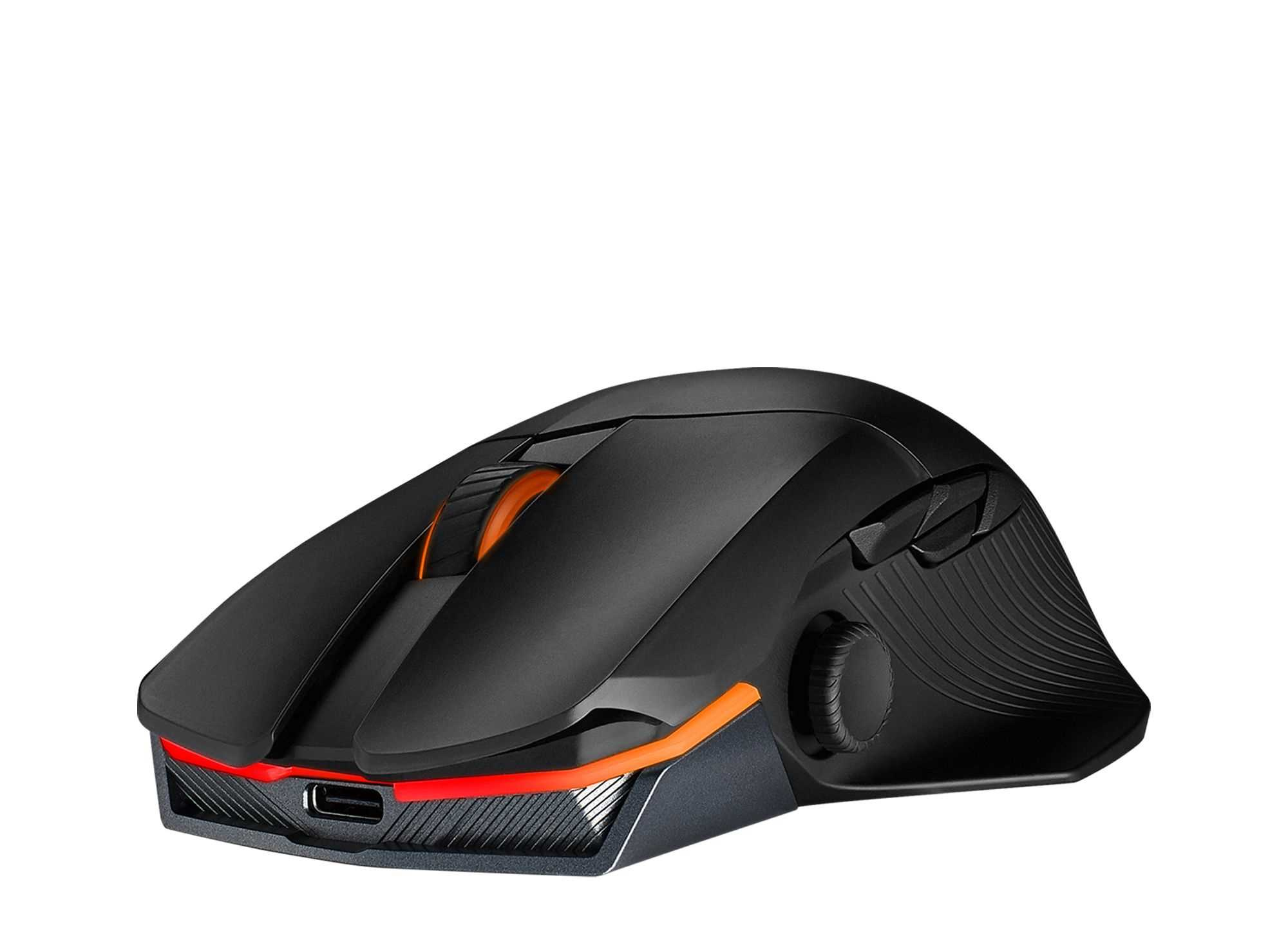ROG Chakram X wireless RGB gaming mouse with next-gen 36,000 dpi ROG AimPoint optical sensor, 8000 Hz polling rate, low-latency tri-mode connectivity (RF 2.4 GHz / Bluetooth / wired), 11 programmable buttons, an analog joystick and hot-swappable micro switch sockets (mechanical / optical ).