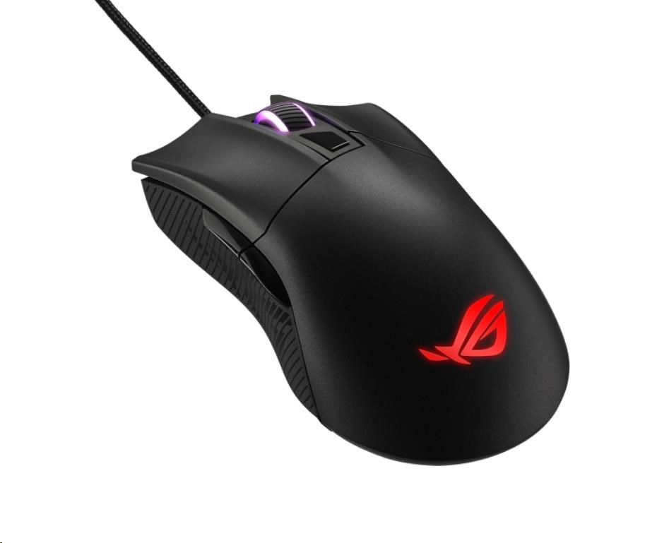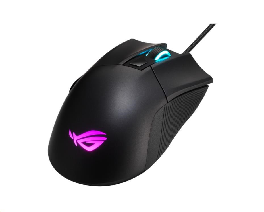 - Classic ROG Gladius ergonomics, with discrete left and right buttons, lightweight design and durable non-slip side grips etched with the iconic ROG totem