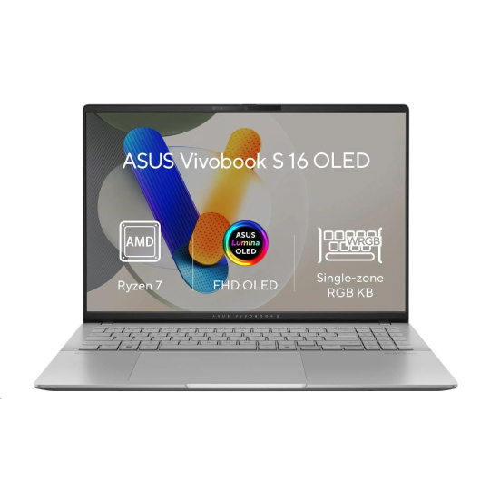 ASUS NTB Vivobook S16 OLED (M5606KA-OLED094X), AI 7 350, 16" 3K, 24GB, 1TB SSD, AMD Radeon, W11 Pro, Cool Silver
