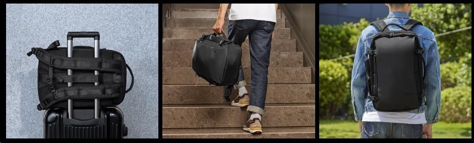 ProArt můžete používat jako běžný batoh nebo ho pomocí bočního držadla nosit jako aktovku. Batoh lze také připevnit ke kufru pomocí popruhu na zavazadla.