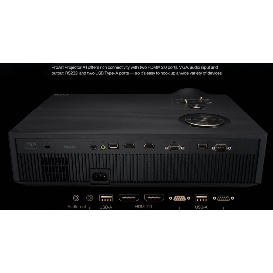 ASUS ProArt A1 LED professional projector- World’s first Calman Verified projector,? E < 2, 98% sRGB and Rec. 709, FHD (1920 x 1080), 3000 lumens, Four corner and 2D keystone correction, 1.2X zoom ratio, wireless mirroring