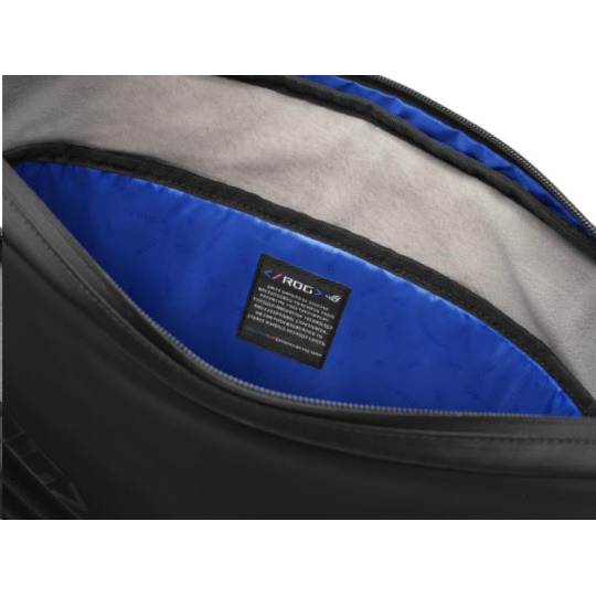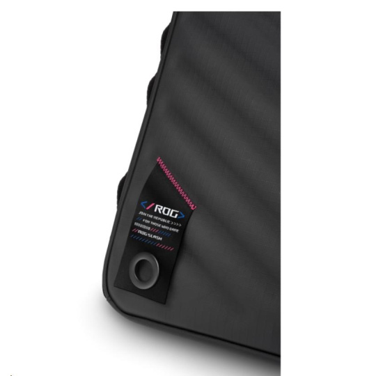 Tašku zdobí modré a růžové akcenty a prošívání, které jí dodávají barevný nádech a dávají světu najevo, že nosíte něco opravdu výjimečného. Vzheld ROG SLASH je také vybaven jedinečným monogramem ROG.