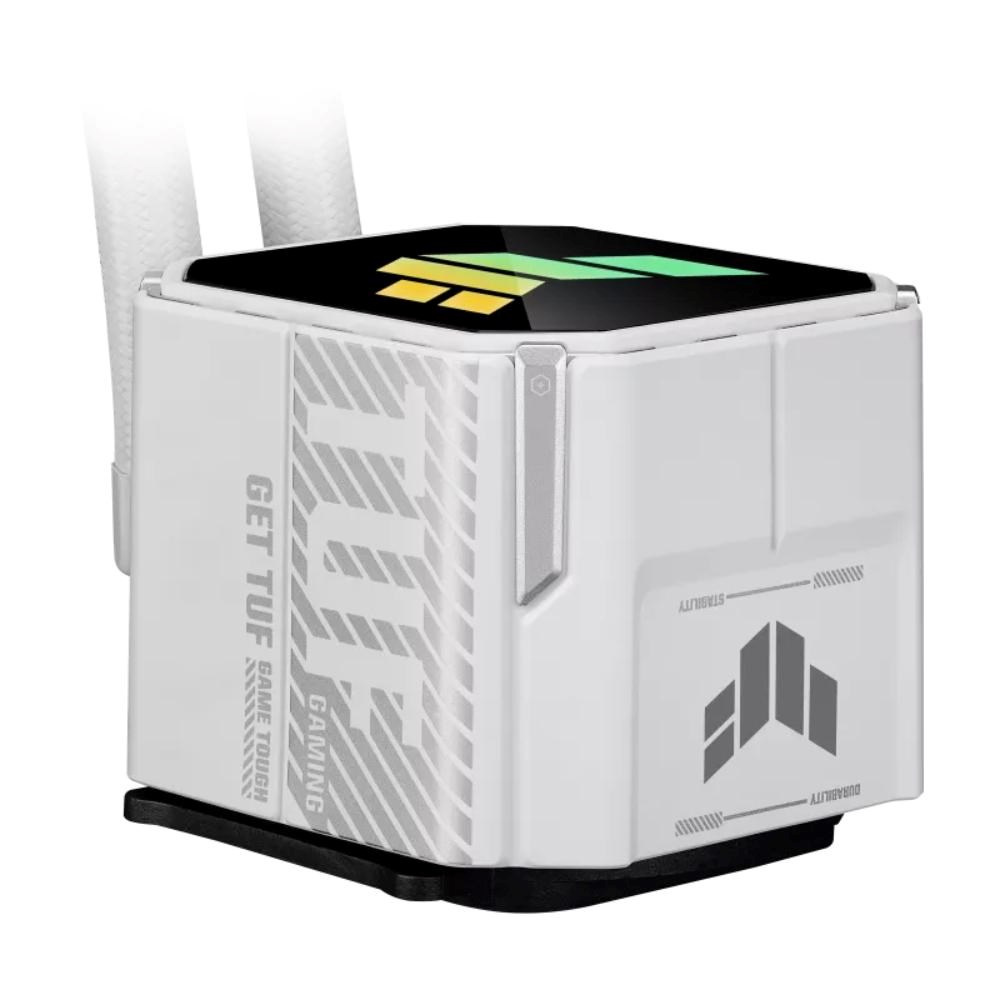 TUF Gaming LC III 360 ARGB White Edition all-in-one vodní chladič CPU s předinstalovanými a integrovanými trojitými ventilátory navrženými pro vysoký průtok vzduchu a statický tlak; účinné čerpadlo pro zajištění optimální provozní teploty CPU.
