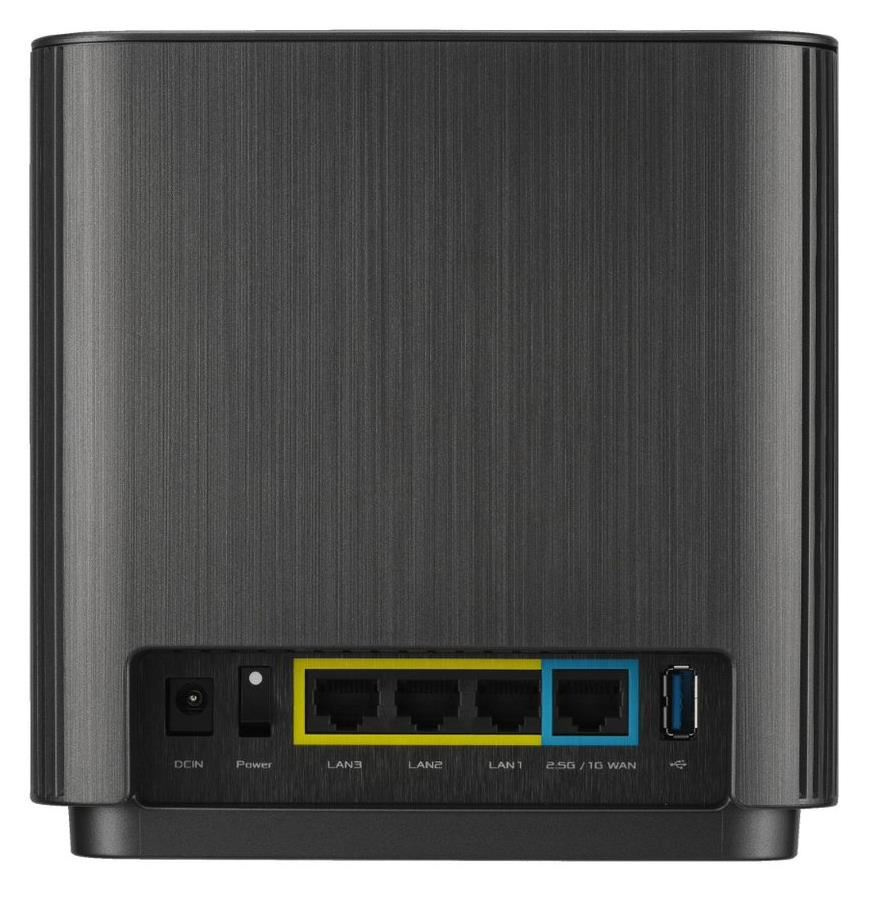 Wireless AX7800 Tri Band 2.5Gigabit Router WiFi 6 (802.11ax), 2402Mbps (5G-1) Wi-Fi 6 (802.11ax), 4804Mbps (5GHz-2) Wi-Fi 6 (802.11ax), 574bps (2.4GHz) Whole home mesh wifi system for large and multi-story homes Supports flexible SSID setting, wired inter-router connections AiProtection Pro network security powered by Trend Micro Ethernet 2.5Gigabits WAN x 1, LAN x 3 USB 3.1 Gen 1 x 1.