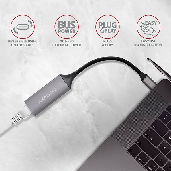 AXAGON ADE-TRC, USB-C 3.2 Gen 1 - Gigabit Ethernet síťová karta, auto instal, titanově šedá