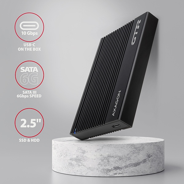 AXAGON EE25-GTR, USB-C 10Gbps - SATA 6G 2.5" RIBBED box, černý