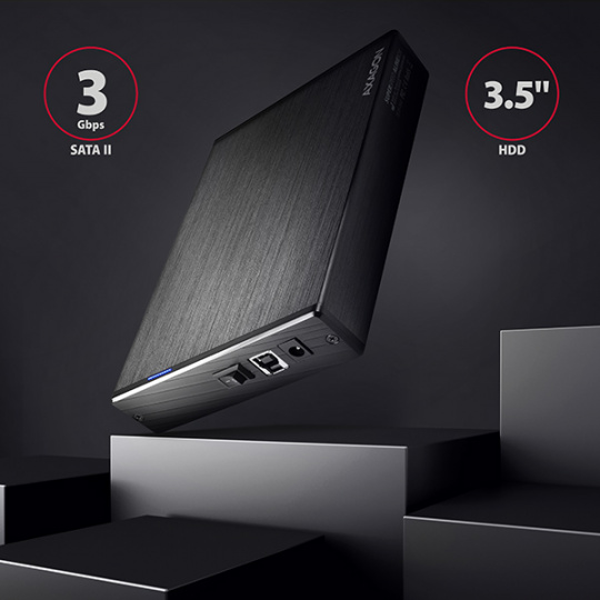 Kompaktní hliníkový externí box AXAGON EE35-XA3 ALINEbox s vysokorychlostním USB 3.2 Gen 1 (USB 3.0) rozhraním určený pro 3.5" SATA disky.