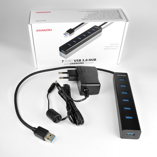 AXAGON HUE-SA7BP, 7x USB 3.0 ALU CHARGING hub, vč. AC adaptéru, kabel USB-A 40cm