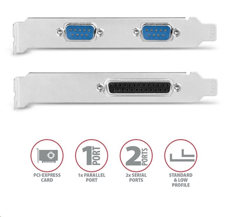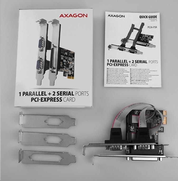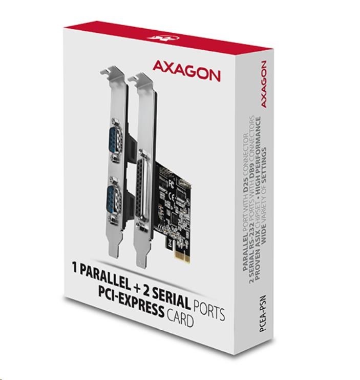 AXAGON PCEA-PSN, PCIe řadič - 1x paralelní (LPT) + 2x sériový port (RS232) 250 kbps, vč. LP