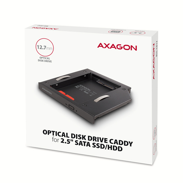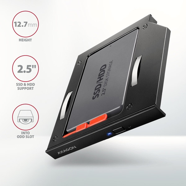 AXAGON RSS-CD12 rámeček pro 2.5" SSD/HDD do DVD slotu, 12.7 mm, LED, hliník