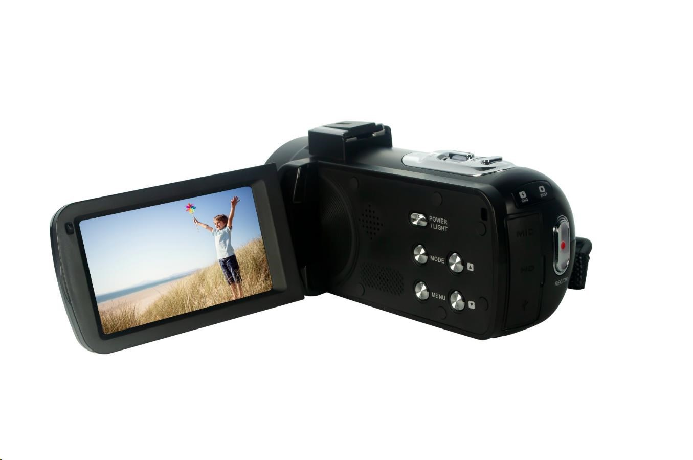 Videokamera Realimove CC2700 obsahuje vše, co byste od videokamery očekávali plus mnoho dalšího. Vestavěné LED světlo poskytuje potřebný jas pro noční videa a slouží také jako blesk pro fotografie.