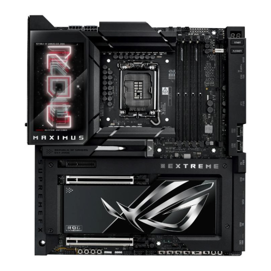 The ROG Maximus Z890 Extreme is the ultimate expression of cutting-edge motherboard technology and performance. Discover the upper limits of Intel® Core™ Ultra Series 2 processors, DDR5 modules, PCIe® 5.0 graphics cards, NVMe storage, USB connectivity, Thunderbolt™ functionality and more – all wrapped up in a sleek package featuring a full-color 5-inch long LCD screen that can deliver vibrant imagery or live system stats to suit your personal tastes.