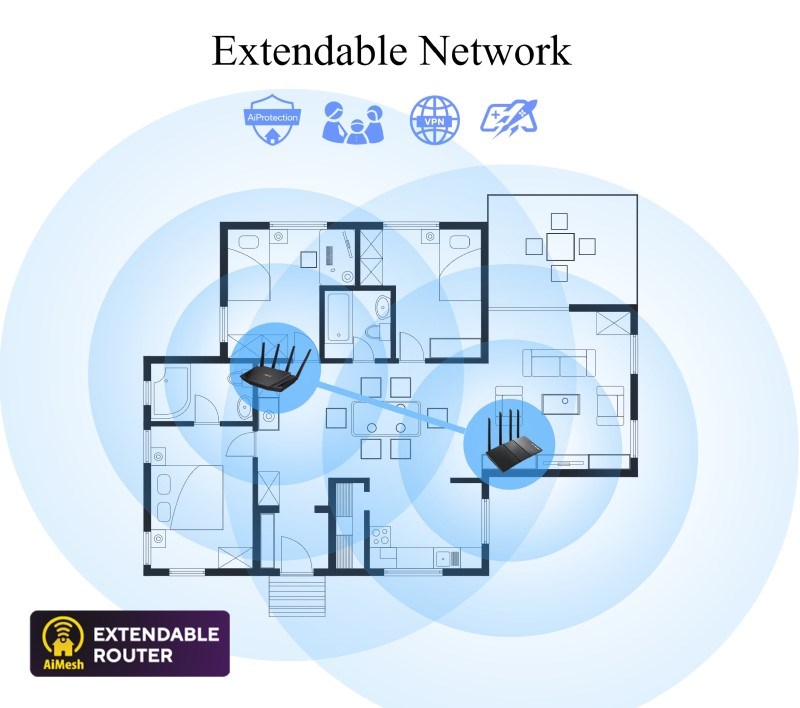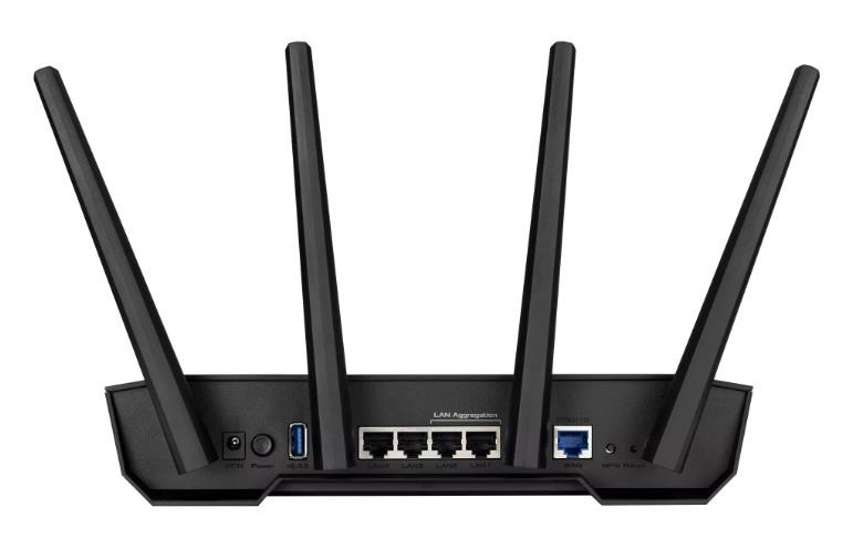 TUF Gaming AX3000 V2 Dual Band WiFi 6 Gaming Router with Mobile Game Mode, 3 steps port forwarding, 2.5Gbps port, AiMesh for mesh WiFi, AiProtection Pro network security Ultrafast WiFi 6 - Enjoy speeds up to 3000 Mbps and 4X network efficiency with OFDMA and 160 MHz channels. True Multi-Gigabit wired speeds - Aggregated 2 Gigabit LAN connections, wired 2.5Gbps port and WiFi 6. Easy Port Forwarding in 3 Steps - Open NAT makes port forwarding simple, eliminating frustrating and complicated manual configuration. ASUS AiMesh Support – Create a flexible, seamless whole-home mesh network with AiMesh-compatible routers. Tested Durability and Stable Operation - TUF Gaming AX3000 V2 is built to be durable and undergoes verified testing to ensure reliable, stable operation.   802.11a : up to 54 Mbps 802.11b : up to 11 Mbps 802.11g : up to 54 Mbps WiFi 5 (802.11ac) (1024QAM) : up to 867 Mbps WiFi 6 (802.11ax) (2.4GHz) : up to 574 Mbps WiFi 6 (802.11ax) (5GHz) : up to 2402 Mbps   2.4GHz 2x2 5GHz 2x2  RJ45 for 2.5 Gigabits BaseT for WAN x 1, RJ45 for Gigabits BaseT for LAN x 4, USB 3.2 Gen 1 x 1,.