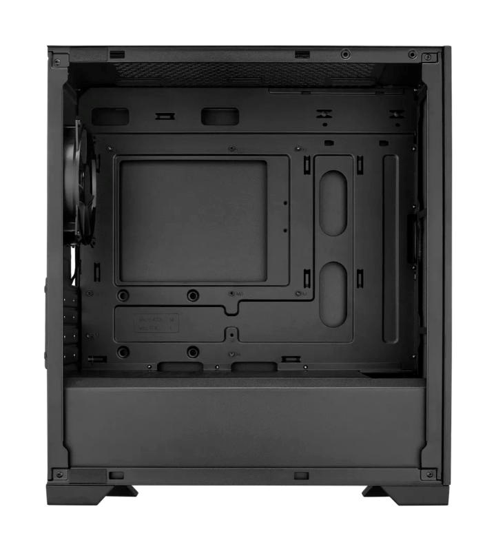 Elite 301 je vybaven velkou sací mřížkou, která zajišťuje hladký a efektivní chod systému. Plně černý povlak a přiložený kryt PSU umožňuje čisté sestavení, které je vizuálně přitažlivé i funkční.