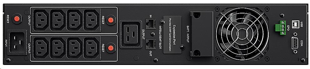 Počet výstupních zásuvek:9; Použití:Server; Provedení:Tower, Tower/Rack; Zdánlivý výkon VA:3000; Výška v Racku:2U; Topologie:On-Line; Fáze (Vstup/Výstup):1:1; Komunikace:USB, RS232; Možnosti:Volitelně Management karta, Prodloužení záložního času, EPO konektor; Typ výstupu:IEC 13, IEC 19.... více