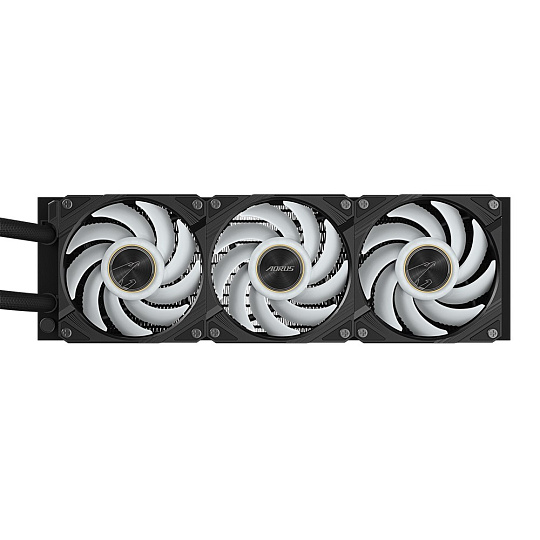 • Vodní blok a ventilátor mají gradientní osvětlení a osvětlení ventilátoru ARGB lze synchronizovat s ostatními zařízeními AORUS prostřednictvím GCC (GIGABYTE Control Center).